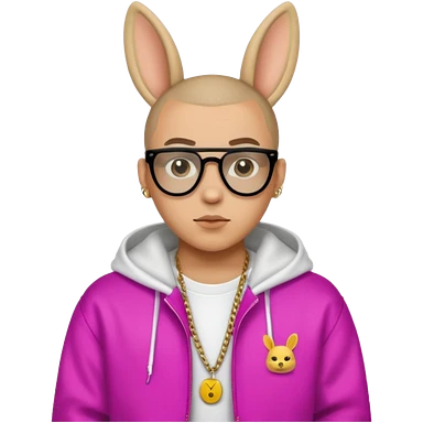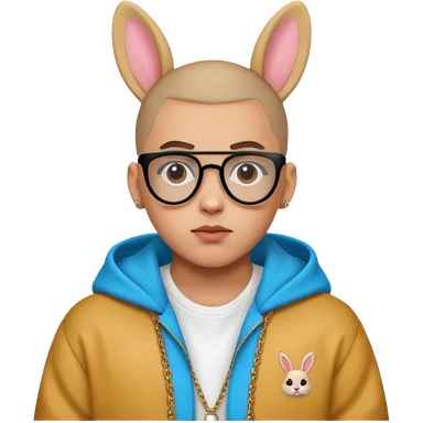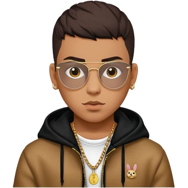 Bad Bunny, Latin Trap Singer with dark brown hair emoji