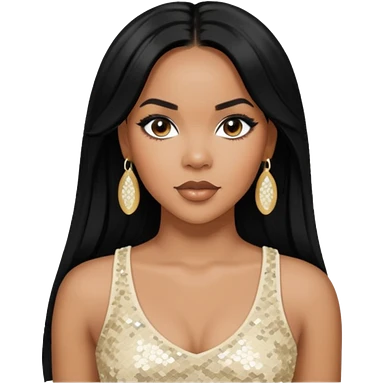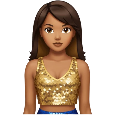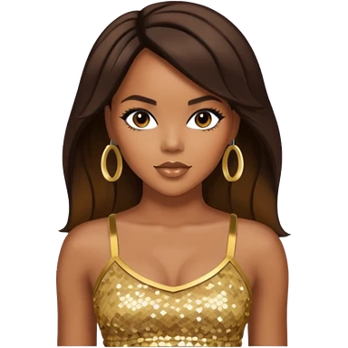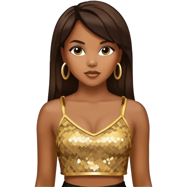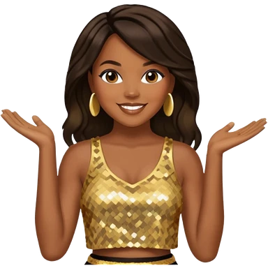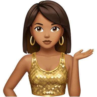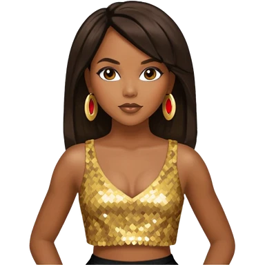 LeToya Luckett with dark brown long hair, gold sequin crop top emoji