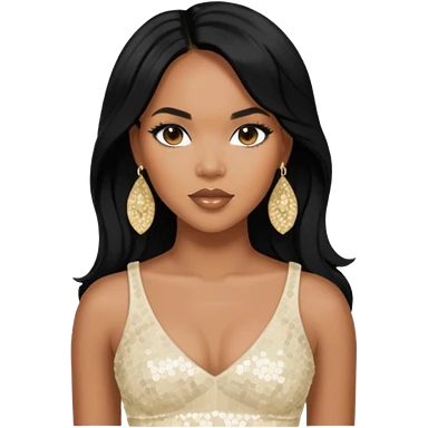 LeToya Luckett with long black hair, ivory sequin crop top, ivory earring emoji