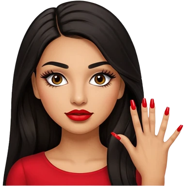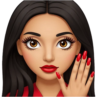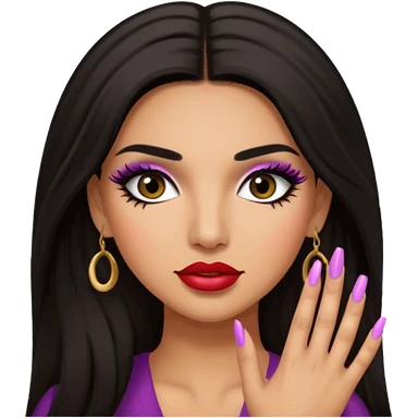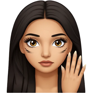 Baddie Latina emoji with fake lashes and white nails with white liquid covering her face