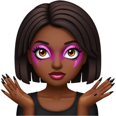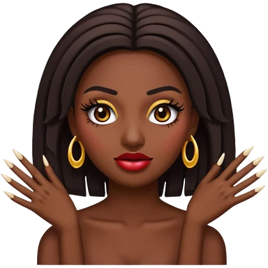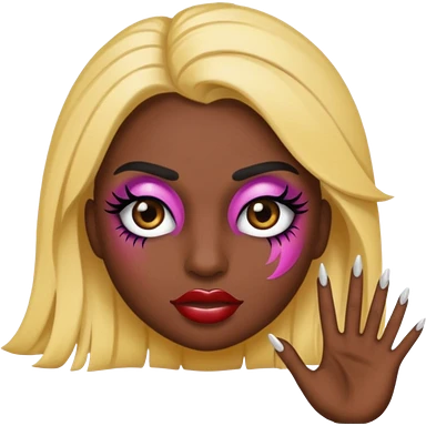 Baddie Latina emoji with fake lashes and white nails with white liquid covering her face emoji