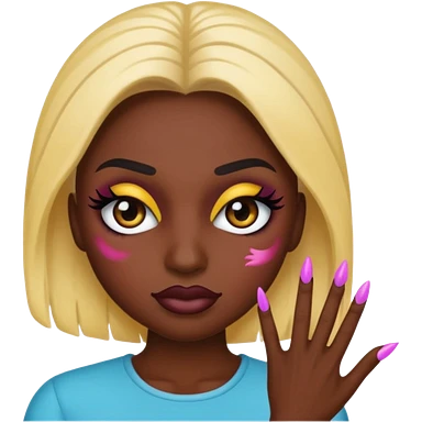 pretty bratz baddie, long blonde straight hair, pretty makeup, fake lashes, baddie clothes emoji