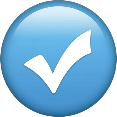 Génère un emoji représentant un badge de vérification : un cercle bleu clair avec un symbole ✔️ blanc au milieu, style simple et plat, comme sur les réseaux sociaux. emoji