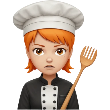 girl, Short orange hair, angry, wearing chef uniform and chef hat emoji