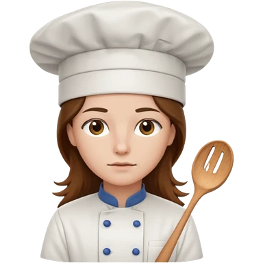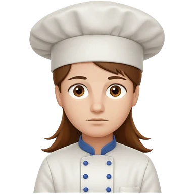 Long brown hair, serious, wearing chef uniform and chef hat emoji