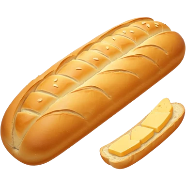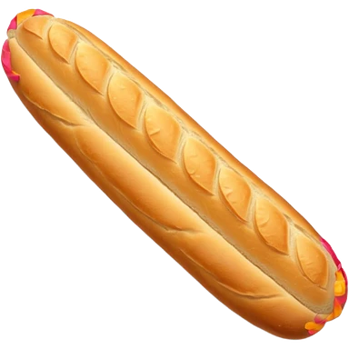 baguette bread object icon, crispy golden crust, detailed bread texture, 3D cartoon, mobile game icon style, centered, clean background, soft shadow, no text, no watermark emoji