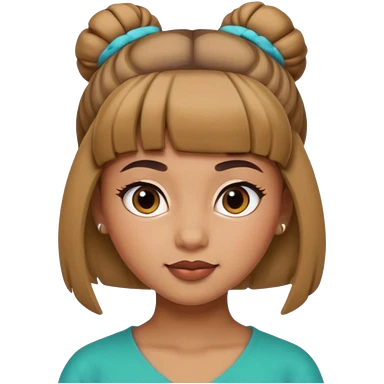 In Apple Memoji format, a girl with bangs and her hair in a bun. The girl has light brown skin and arab ethnic features emoji