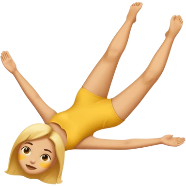 Yellow skin emoji girl lays down facing camera downward dog emoji
