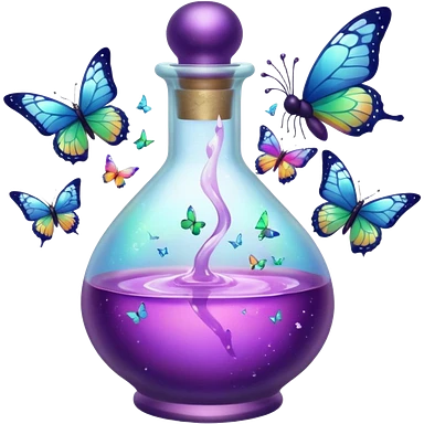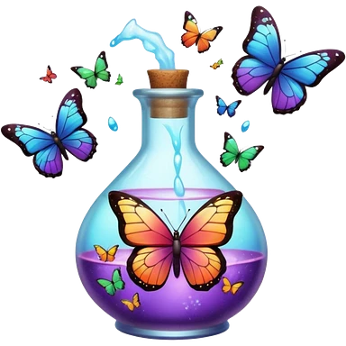 Potion bottle bursting into butterflies mid-sip emoji
