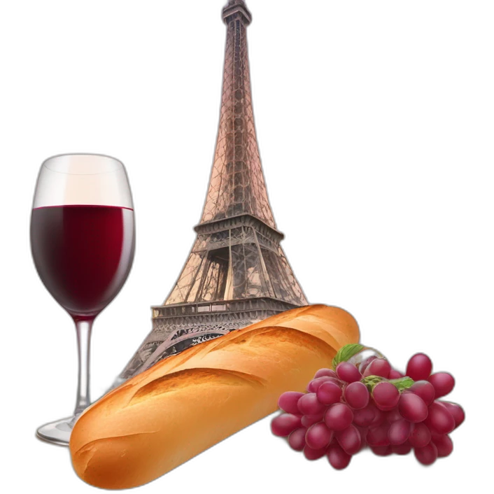 Baguette et vin rouge devant la Tour Eiffel emoji | AI Emoji Generator