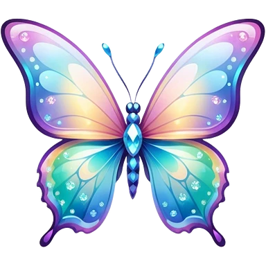 Transparent Shiny Glossy Pastel Gradient Hue Iridescent Crystal Butterfly with bright sparkles and sparkling glitter swirling around it emoji