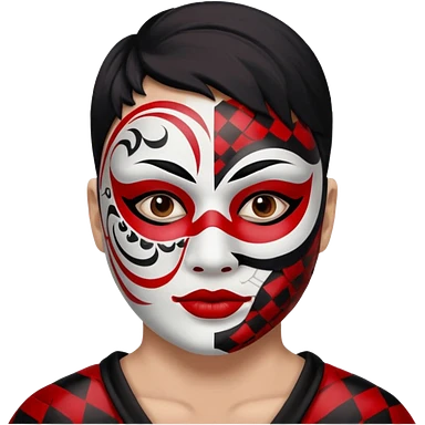 Painted Face, Mask painted red, white, and black patterns. emoji