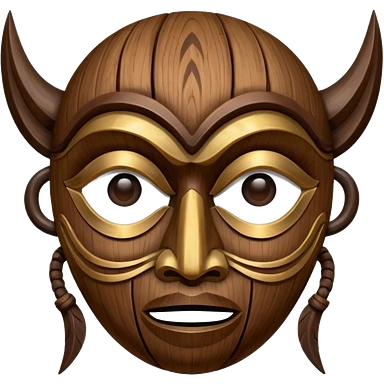 Wooden Mask, Brown carved wood face with hollow eyes. emoji