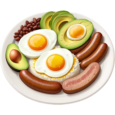 bandeja-paisa-cinematic-realistic-bandeja-paisa-dish-emoji,-depicted-as-a-hearty-platter-featuring-rice,-beans,-avocado-slices,-one-sausage,-a-perfectly-cooked-egg,-and-crispy-pork-crackle,-rendered-with-vivid-textures-and-robust,-inviting- emoji