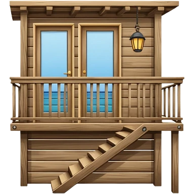 Puerto Rican wooden house facade, central door, two windows, front balcony with rocking chair, scenic frame, humble but well-maintained, warm and authentic, red color emoji