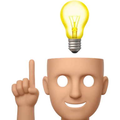 bald head with a large mouth in a u shape with one finger pointing up with a lightbulb above their head emoji