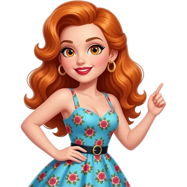 sexy girl with long curvy ginger hair and ginger eyes wearing a 50's rock'n'roll dress is dancing rock'n'roll emoji