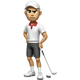 A female golfer with gray hair, pink polo shirt, a black skort, white cap emoji