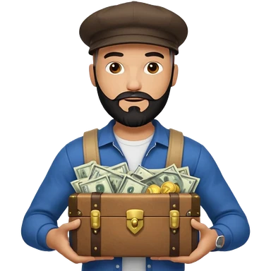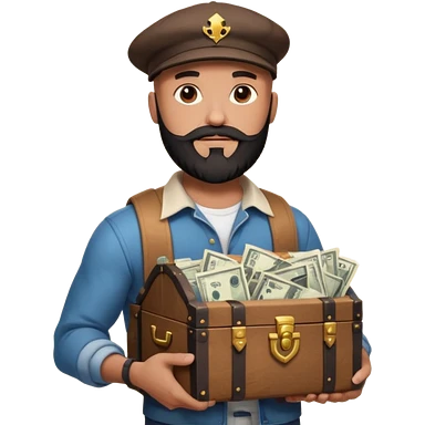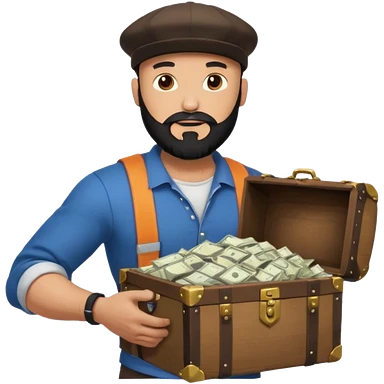 Strong bald man black beard snapback, holding treasure chest full of papers, Instagram logo glowing, dollar signs, minimalStrong bald man black beard snapback, holding treasure chest full of papers, Instagram logo glowing, dollar signs, minimal emoji