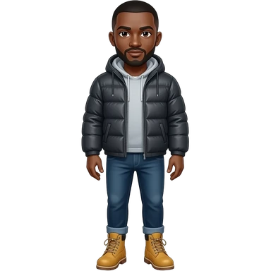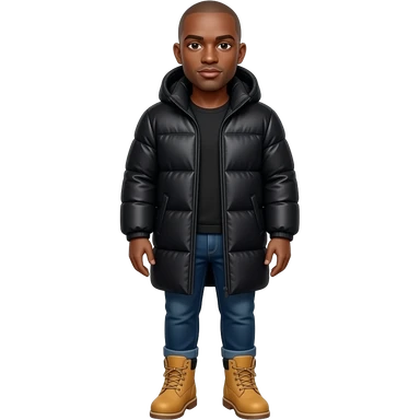 Bald black man with puffer coat, timberland boots emoji | AI Emoji Generator
