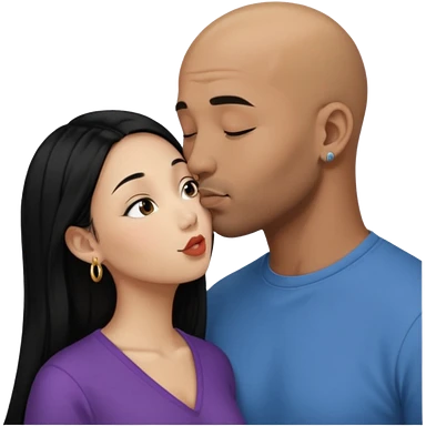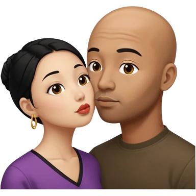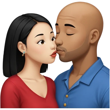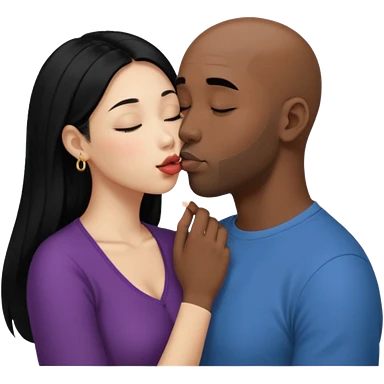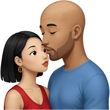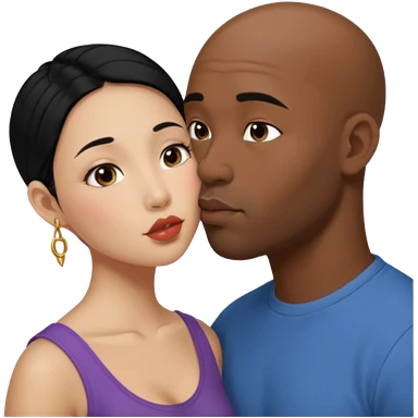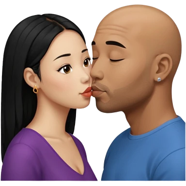 Bald black with small beard deeply kissing a short younger looking asain women with long black hair and nose ring emoji | AI Emoji Generator