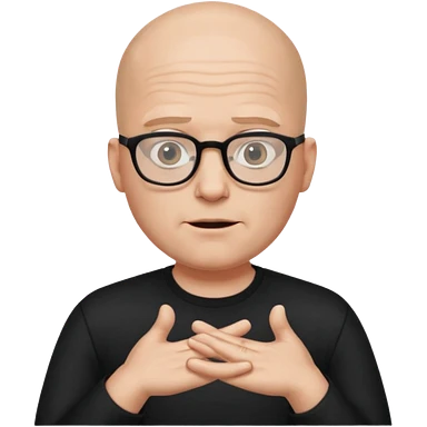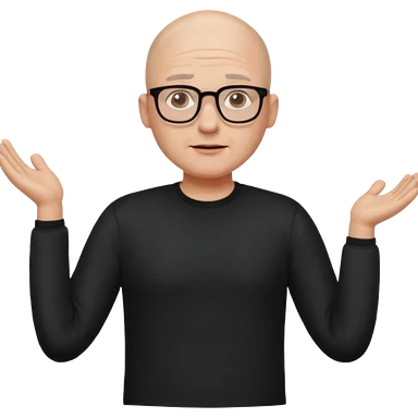 Middle aged bald guy with glasses shrugging shoulders emoji