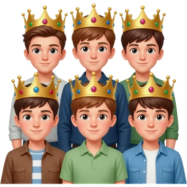 On the top level: smiling bald man with the beard, smiling redhead woman. On the bottom level: three smiling little boys without beards emoji