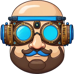 Bald cyborg head with silver steampunk goggles, white beard and circuits emoji | AI Emoji Generator