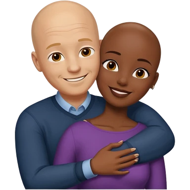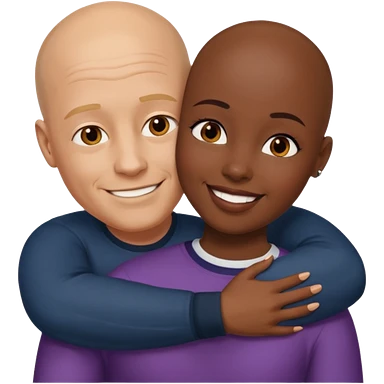 Bald white guy hugging black female friend with braids emoji