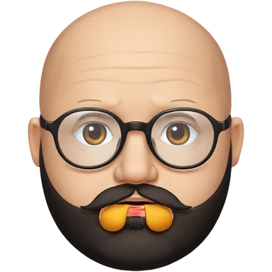 bald headed spanish guy chubby face full black beard and thin round glasses emoji