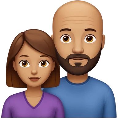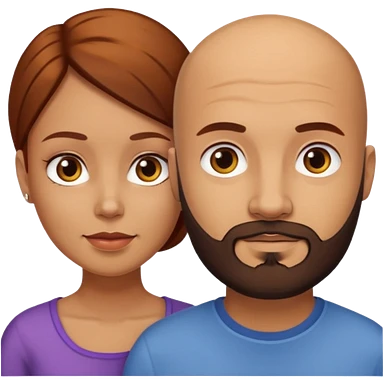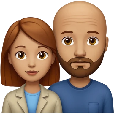 Couple. A bald man with dark brown beard and a girl with light skin dark yellowish brown auburn hair. emoji