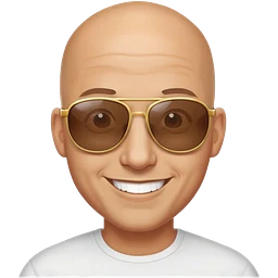 Bald man, not fat but generous cheeks, thine eyes, white emoji
