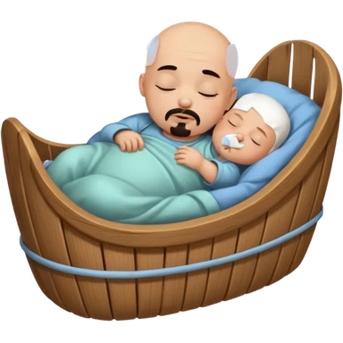 a bald baby with a black goatee sleeping in a cradle emoji