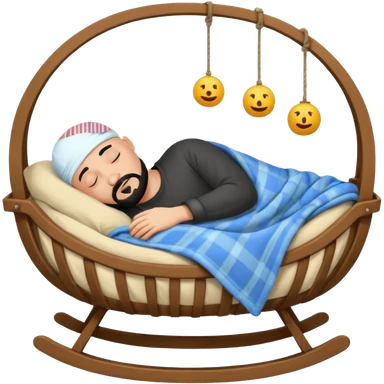 a bald man with a black goatee sleeping in a cradle emoji