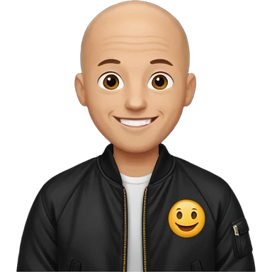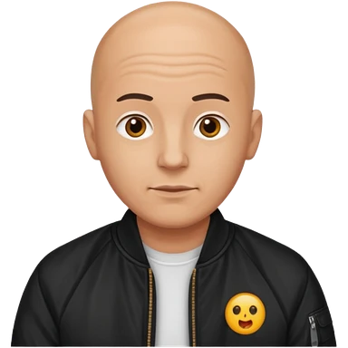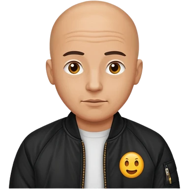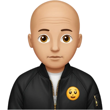 bald man emoji wearing a white tank top and black jacket with a black car in the background emoji