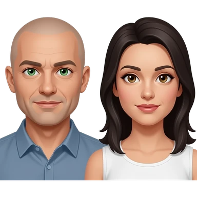 bald man with green eyes and dark haired woman with brown eyes emoji