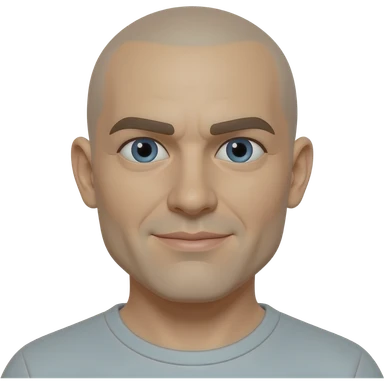 bald man with blue eyes and black rectangle eye glasses smile emoji