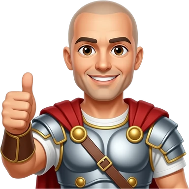 Muscular Roman soldier bald brown eyes smiling giving thumbs up emoji