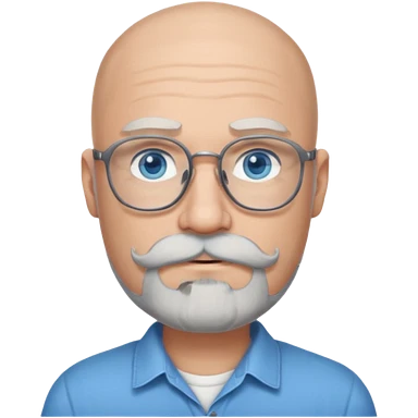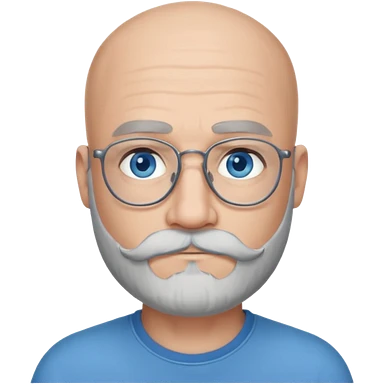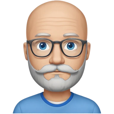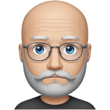 Bald man with blue eyes grey beard and moustache. Black T-shirt emoji | AI Emoji Generator