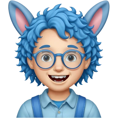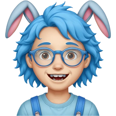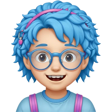 kid with teeth braces bunny eared blue haired curly big teeth and glassess emoji