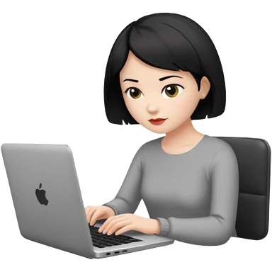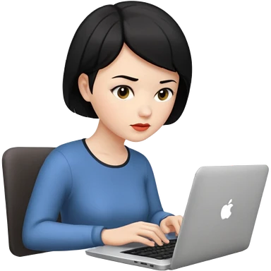 a white woman who has black short hair typing laptop emoji