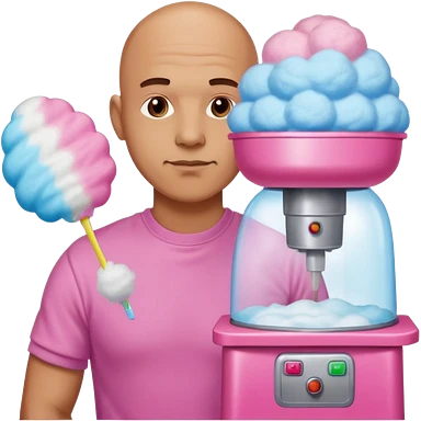 Bald man with cotton candy machine emoji | AI Emoji Generator