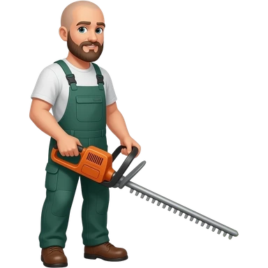 bald man with four inch beard using a string trimmer, weedeater (not hedge trimmer) emoji | AI Emoji Generator