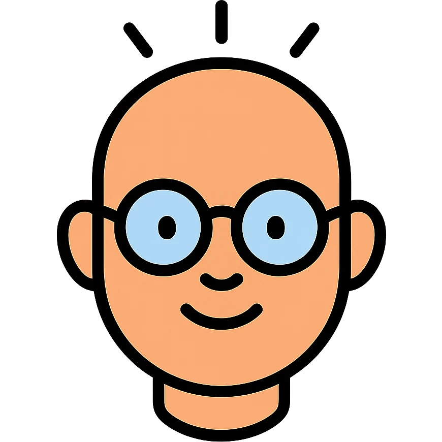 bald man with glasses, head with bright shine lines icon | AI Emoji Generator