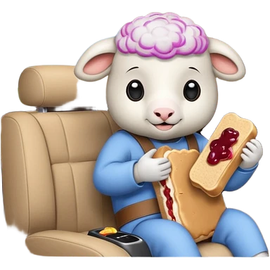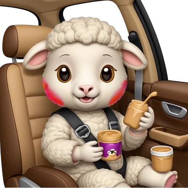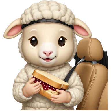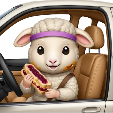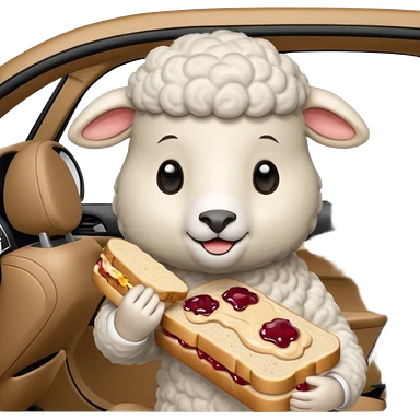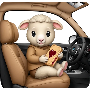 cute baby sheep eating peanut butter and jelly driving in a bmw xi emoji