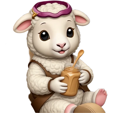 cute baby sheep eating peanut butter and jelly driving in a bmw x1, holding a peanut butter and jelly in hand emoji