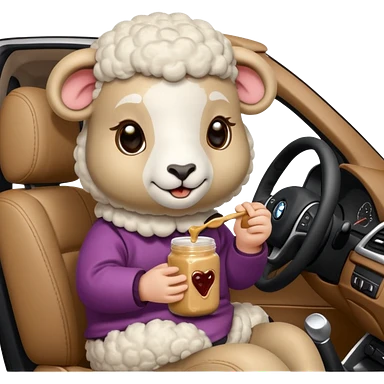 cute baby sheep eating peanut butter and jelly driving in a bmw x1 emoji