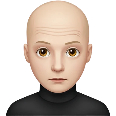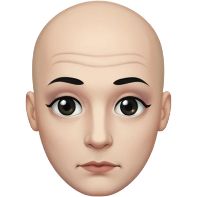 bald person with pink hair, black lipstick, pink eyes, no eyebrows, gold lip piercing, pink eye makeup emoji