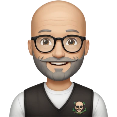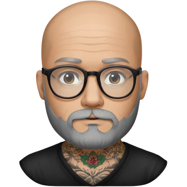 Bald man with salt and pepper beard and glasses and tattoos emoji