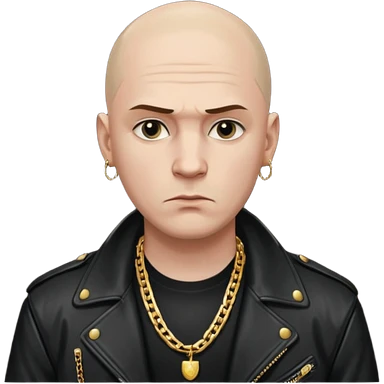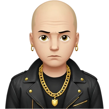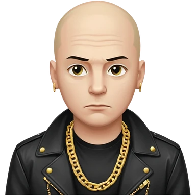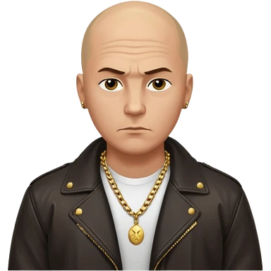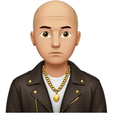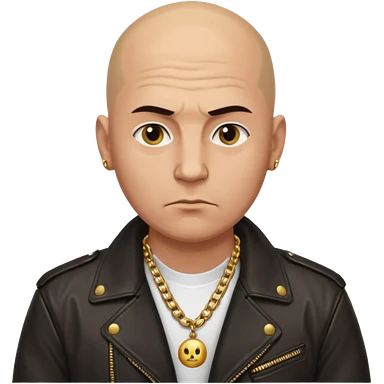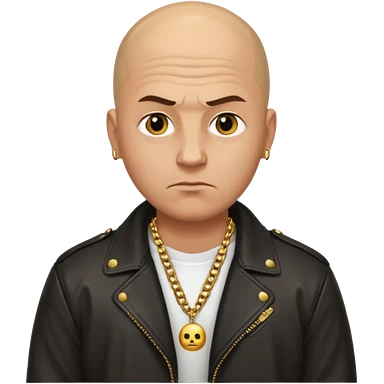 Bald Russian 1990s gangster emoji, leather jacket, gold chain, serious face emoji